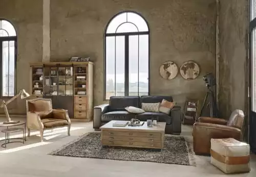 Revêtement : cuir (vachette) pleine fleur aniline aspect vieilli, coloris marron