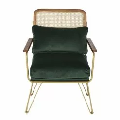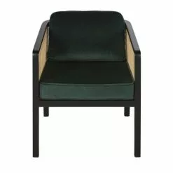 Maisons Du Monde Fauteuils Fauteuil En Velours Vert Cannage En Rotin Et Bois De Bouleau Noir